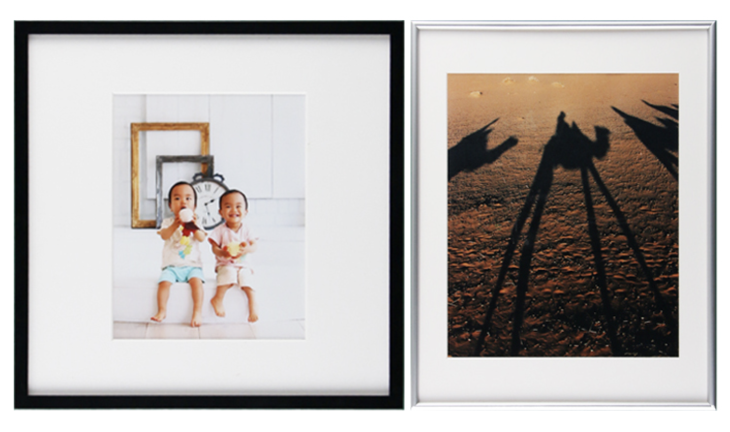 写真に合うシンプルな額縁を選んでおります。お客様ご自身でマットの窓抜き寸法をご指定頂けます。